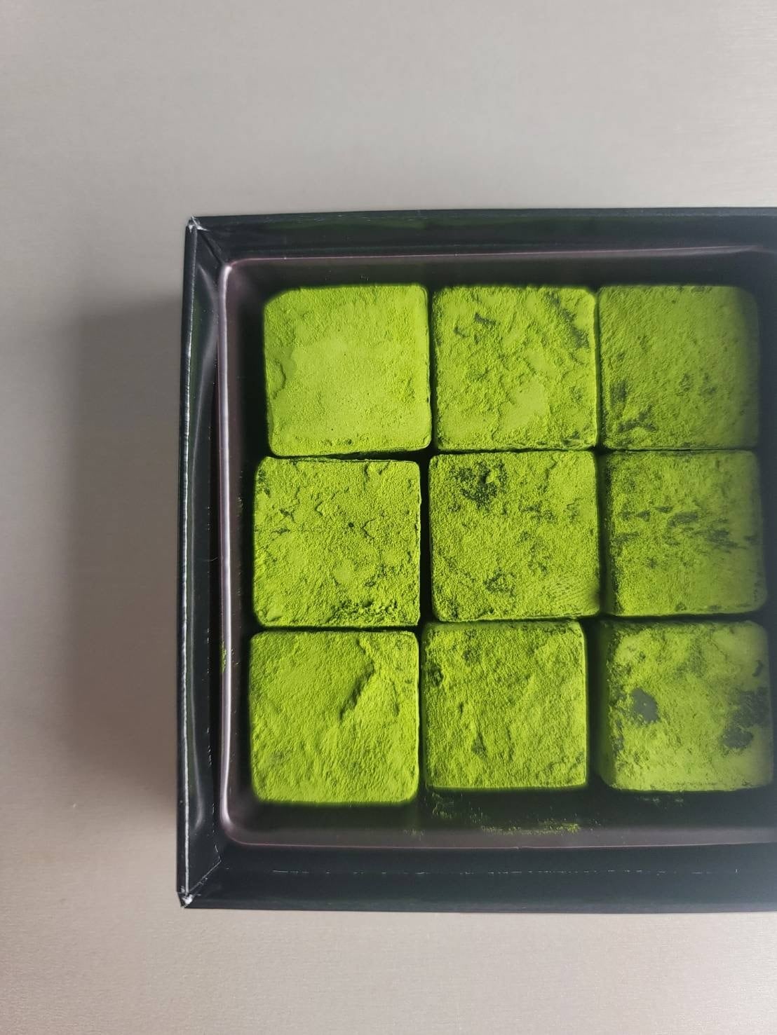 お抹茶を頂く時の香り、味をイメージして製作致しました。しかし、ショコラですので明らかに近づけれないのは温度からの香りです。